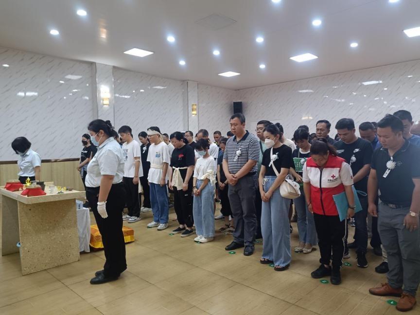 ▲紅十字會和醫護人員向何繼東遺體鞠躬