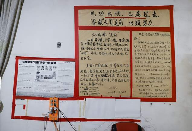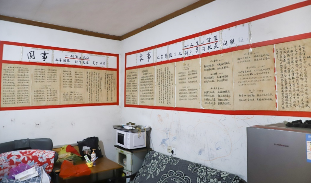 賀宗武的家中,墻壁上貼著的都是自己對修善自身、教育子女、報效祖國的感言心得